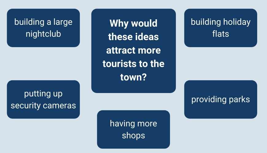 Now, talk to each other about why these ideas would attract more tourists to the town.